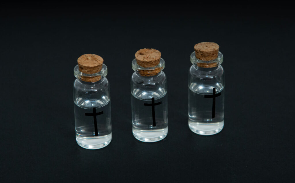 Since it is no longer possible to draw from the stoup in the church today, disposable vials of holy water have therefore been created while maintaining current safety standards for preventing the spread of the virus.