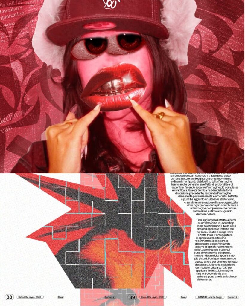 Elaborato grafico editoriale che presenta la scomposizione di un progetto di comunicazione visiva già esistente nei suoi elementi costitutivi.